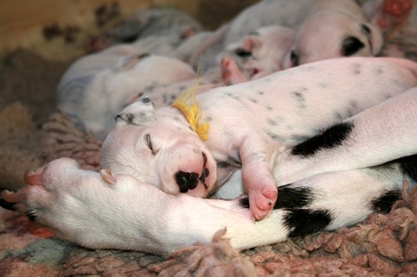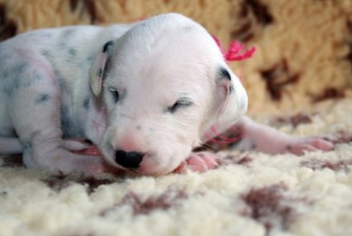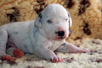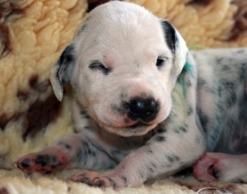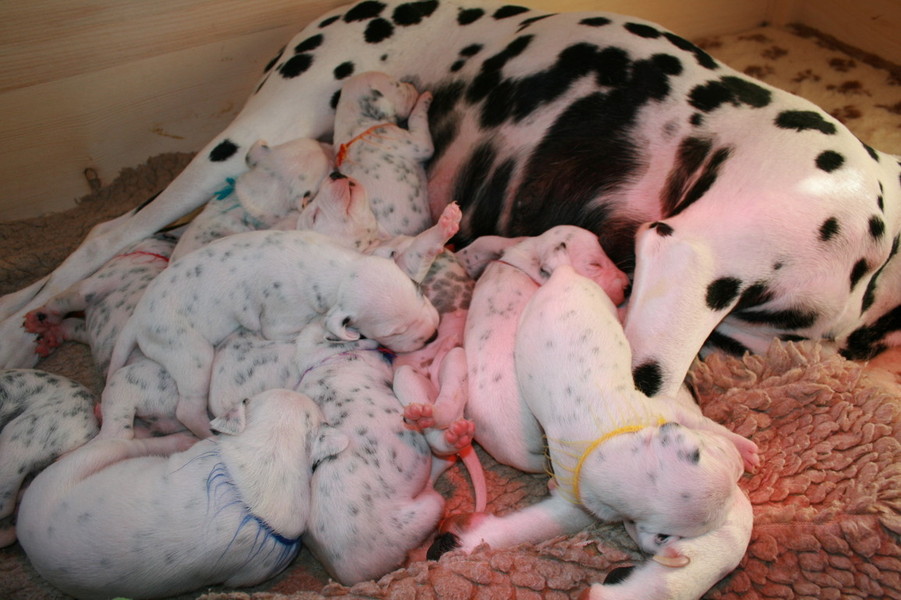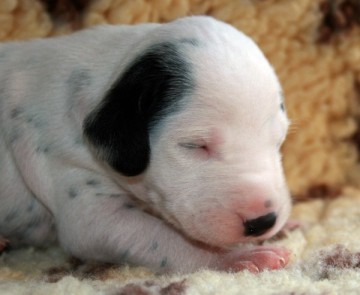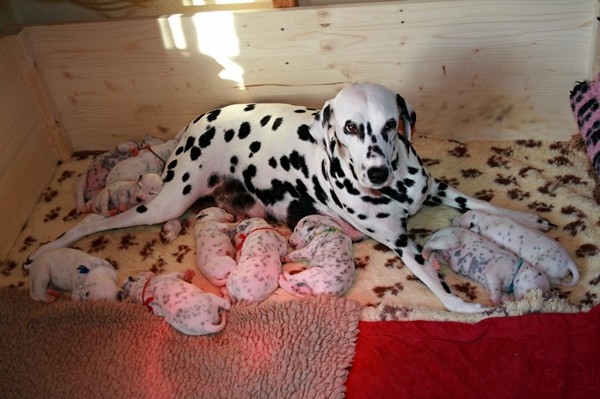 Und schwupps da sind die Kleinen schon zwei Wochen :-) Die Entwicklung der Kleinen in hervoragend und auch die erste feste Tatar-Mahlzeit wurde gut angenommen und auch vertragen. Alle Fleckenzwerge zeigen sich wieterhin total ausgelichen und ruhig. Auch die Tupfen werden immer besser sichtbar. Auch Mama Nala genießt die Welpenzeit mit den kleinen Rackern sehr und genehmigt sich auch hin und wieder eine wohlverdiente Auszeit :-)